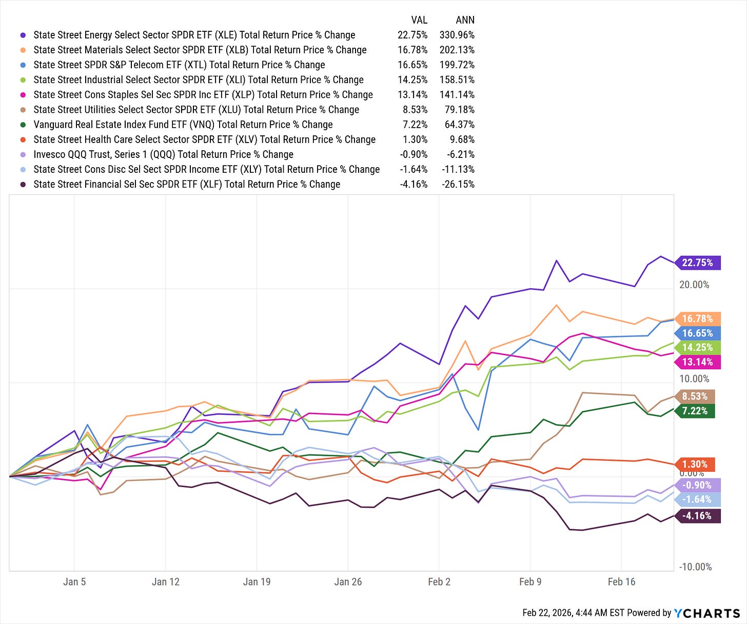 1️⃣ Energy (XLE) +22.75%