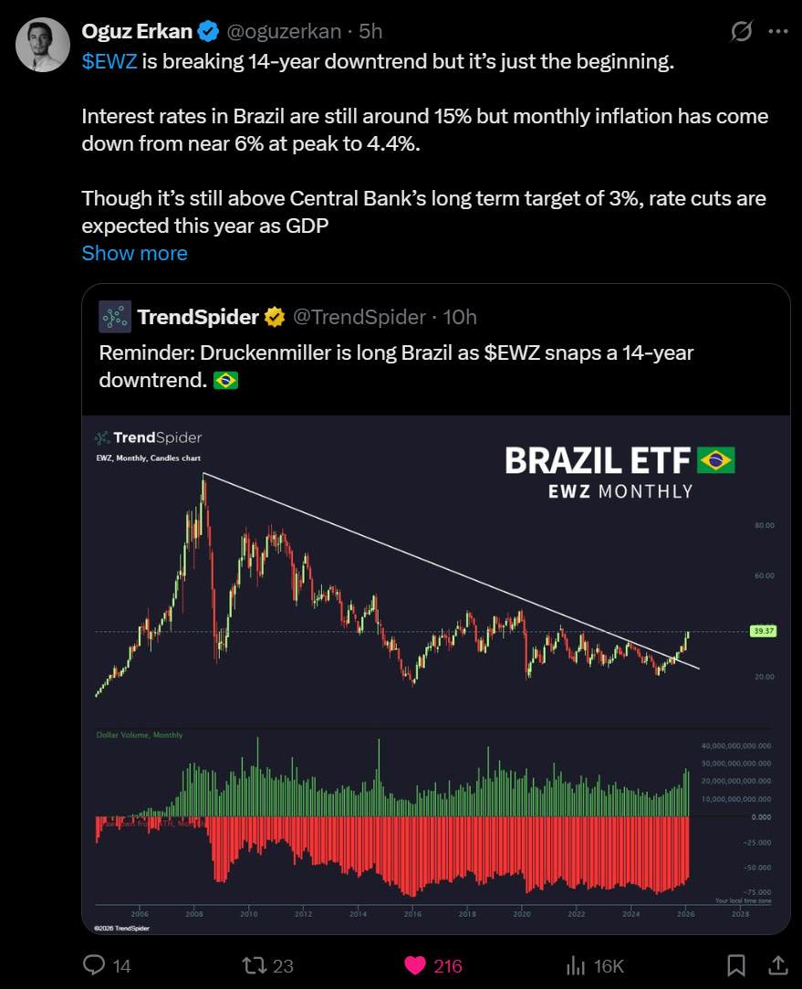 3️⃣ Bovespa (Brasil): +18.25%