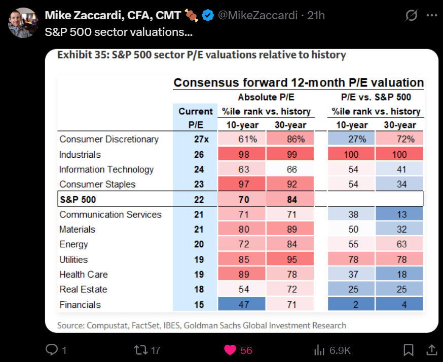6️⃣ Industrials: 31.6× 🟥