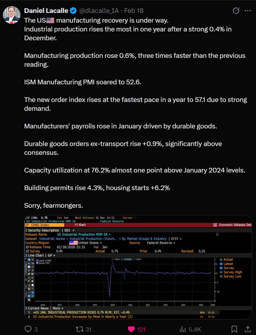 Aunque el Departamento de Trabajo revisó a la baja las cifras de 2025 —de 584.000 empleos creados inicialmente a solo 181.000 en total— ese mal año se explica en gran parte por la destrucción de empleo público, mientras que el sector privado siguió generando puestos de trabajo, aunque a un ritmo moderado. Un sector público que se contrae y un sector privado que se expande es, macroeconómicamente, una señal saludable.