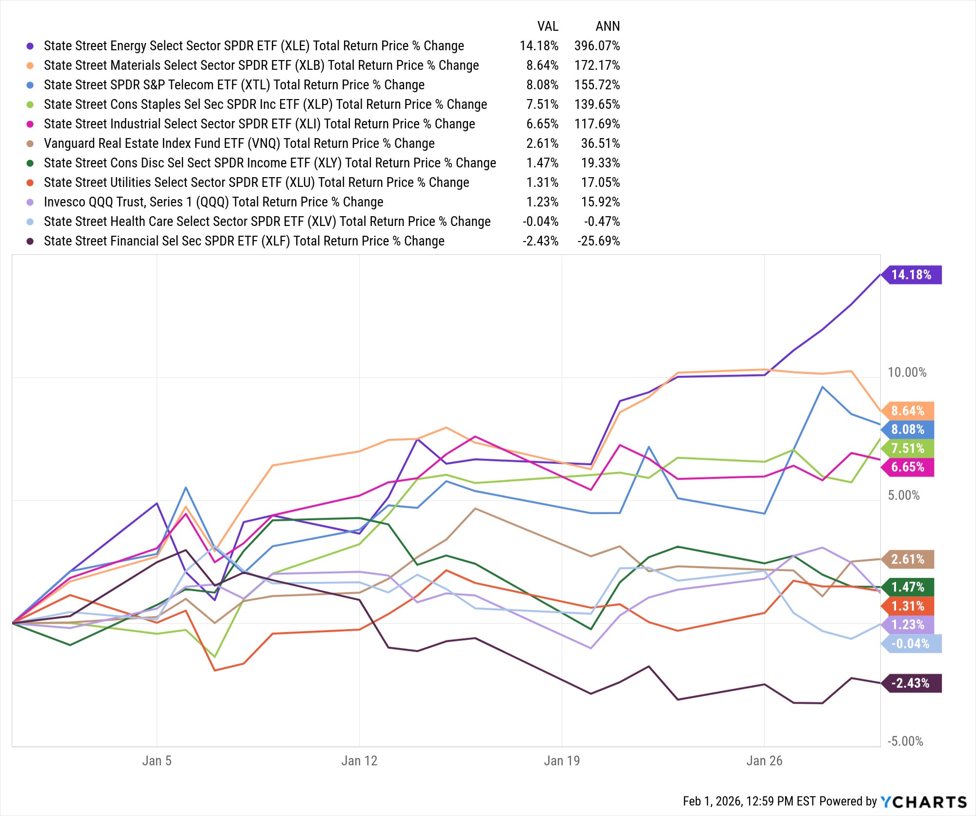 - Energía (XLE): +14.18%