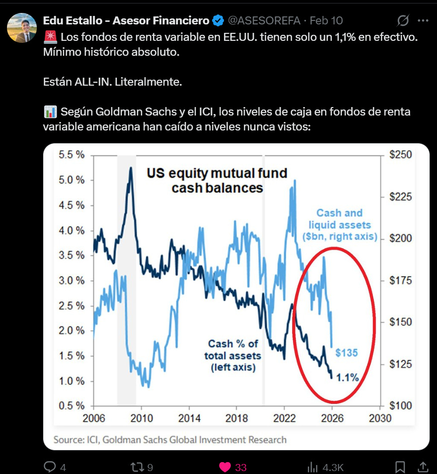 Semana con riesgo de sorpresas macro. Cash = opcionalidad para entrar mejor si aparece dislocación.