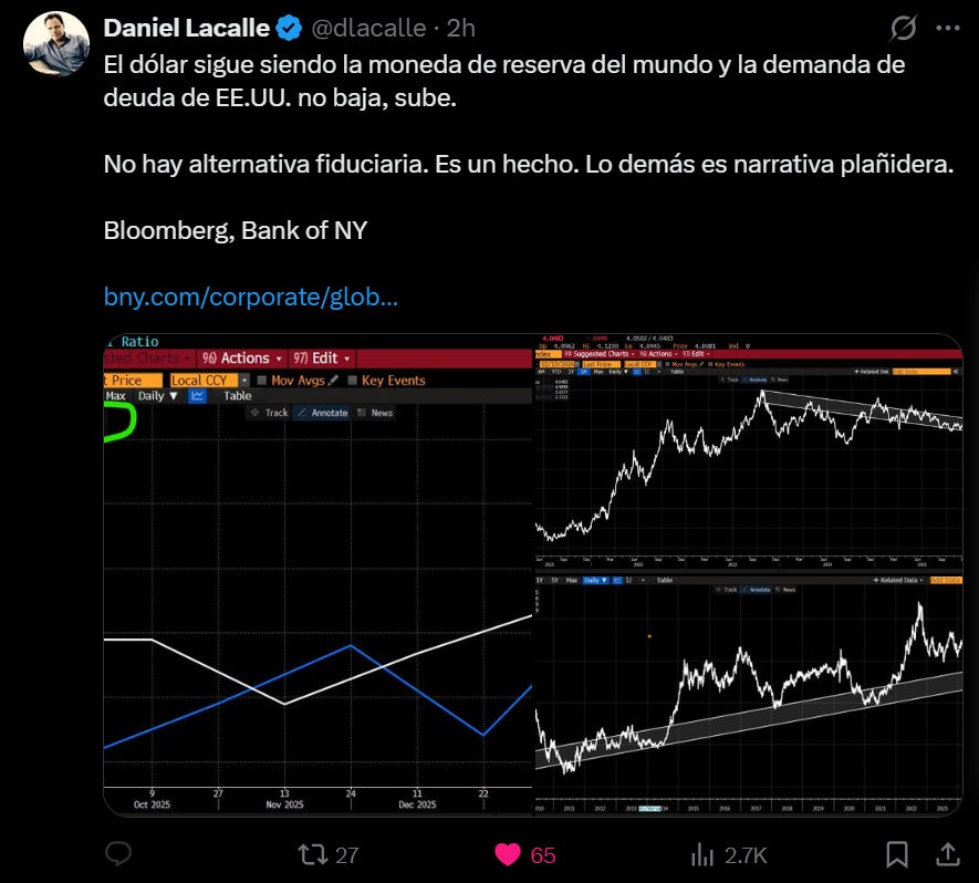 A esto se suma que Ray Dalio declaró la semana pasada que ya hemos entrado oficialmente en el Stage 6 de su teoría del Big Cycle. Esta fase se caracteriza por alto endeudamiento, tensiones internas, polarización política, debilitamiento del orden internacional y aumento del riesgo de conflictos entre grandes potencias. Es la etapa previa a una reestructuración profunda del sistema económico y geopolítico global. Es resumen: es probable que venga una guerra de mayor escala en los proximos años y los gobiernos de EE.UU., UE, China y Rusia se están preparando.