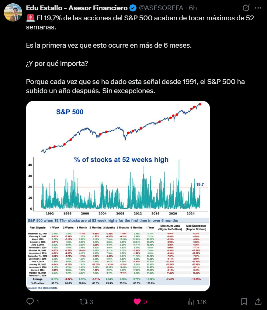 Quienes siguen nuestro research semanal saben que, en un mercado alcista como el actual, esta señal suele aparecer únicamente 2–3 veces al año. Históricamente, ha representado puntos de entrada atractivos.
