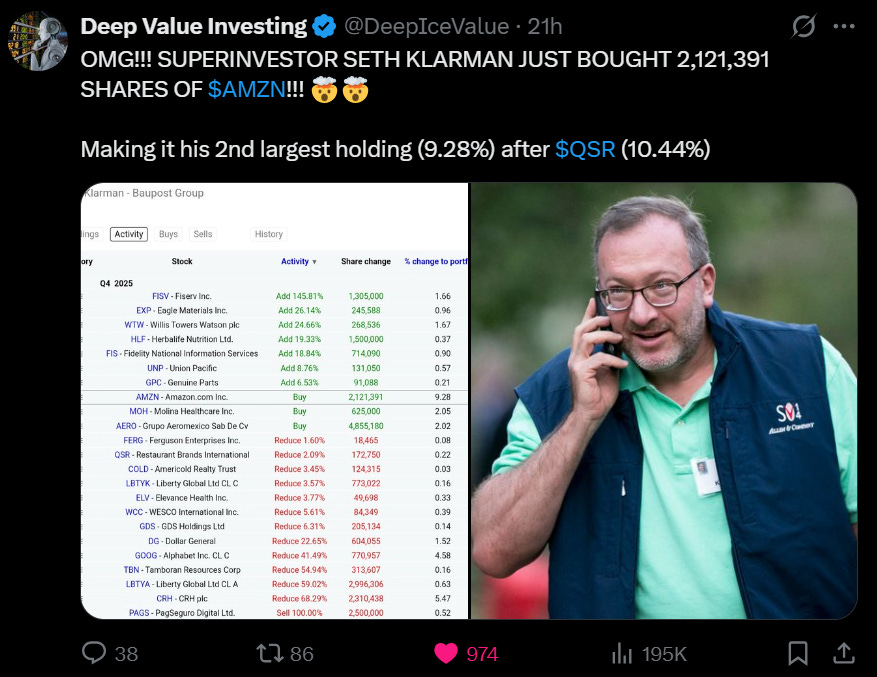 🟢 Amazon: Ingresos $187.8 bn vs $186.2 bn; EPS $1.42 vs $1.36