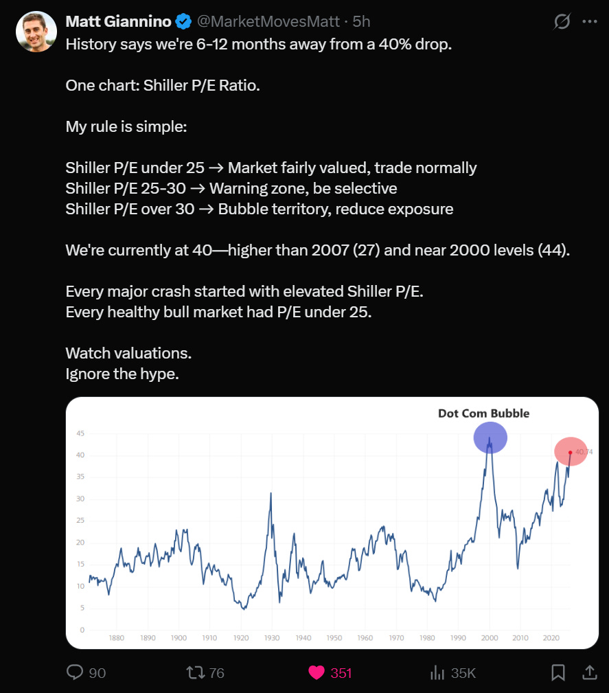 1️⃣ Nasdaq-100: 32.7× 🟥 (muy caro)